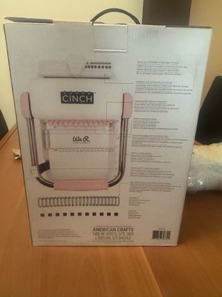 Kit de encuadernación We R Memory Keepers, modelo Cinch, en color rosa.(agujero cuadrardo) esta nueva , se ha usado una vez. - Incluye caja con herramientas de encuadernación plegaderas y centrado de cartón. -un paquete con mas de 4 metros de goma blanca y negra. -caja para perforar u poner remaches para goma en agenda. -anillas para encuadernar negras -taco folios A5 - Diseñado para crear proyectos personalizados.