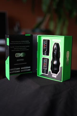 FK Irons EXO máquina de tatuar inalámbrica profesional hibrida, potencia imparable, ya sea por cable o inalámbrica, no notaras diferencia. Stroke: 4.0 Original y con factura, en perfecto estado. Tiene 4 años y medio, alrededor de 200h. de uso. Precio del compra original: 1100€ Maquina Versatil para lineas, relleno, sombra o color. Cuidada con muchísimo amor, siempre guardada en caja al terminar. Características Principales: Color: Black Ops Viene con: 1x PowerBolt (1 bateria para usar sin cables, ni fuente de alimentación) 1x adaptador RCA Grip ergonómico de 40mm con peso en la parte delantera, para comodidad.