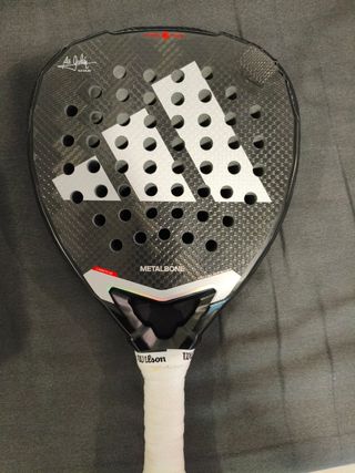 Pala de pádel Adidas Metalbone con acabado en carbono. - Diseño Ale Galán. - Tecnología Metalbone. - Overgrip Pro Performance. -Reparacion por un profesional tenía una pequeña rajita y decidí reparar antes de que llegara a más - -La pala no tiene más de 10 partidos la reparación no afecta en nada es una pala de cerca de 400 euros .
