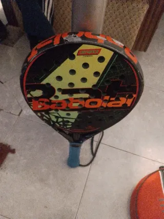 Raqueta de pádel de la marca Babolat. - Diseño con detalles en amarillo y negro. - Logo de la marca en la cara. - Empuñadura con cinta protectora.