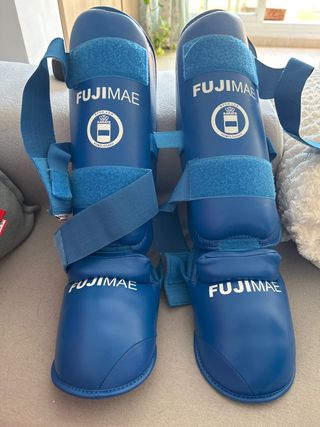 Protecciones para artes marciales de la marca Fujimae en color azul. - Talla M. - Cierre con velcro. - Homologadas para Karate.