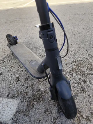 Patinete eléctrico Xiaomi en color gris con su cargador original . Ideal para desplazamientos urbanos. - velocidad máxima 25km - batería dura - Plataforma antideslizante. - Rueda delantera y trasera. - Manillar ajustable.