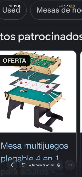 Mesa de juegos plegable que incluye 4 opciones de entretenimiento. - Futbolín - Billar - Hockey - Tenis de mesa