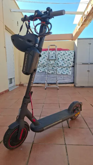 Patinete eléctrico Xiaomi 4 Pro en buen estado. - Diseño elegante y moderno. - Manillar ajustable. - Ruedas resistentes. - Incluye candado y casco. - Incluye alarma y mochila. - Tiene freno a disco trasero.