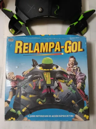 Juego de mesa Relampagol de Parker. - Juego motorizado de acción rápida. - Incluye bolas amarillas y negras y red extra además de dos separadores que entiendo que es por si solo juegan 2 o 3 jugadores. - Está en buen estado salvo por las pegatinas que están un poco despegadas. - Funciona todo correctamente. - La caja es lo que quizás tiene más desperfectos.