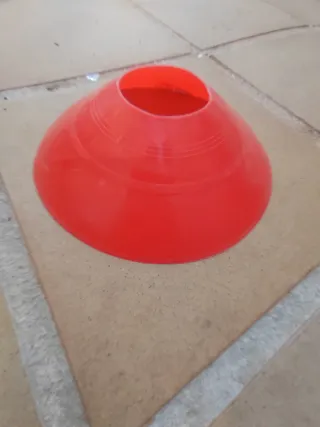 Set de 6 conos de entrenamiento para fútbol. Son de color rojo y están diseñados para diversas actividades deportivas. - Color: Rojo - Material: Plástico - Cantidad: 6 unidades