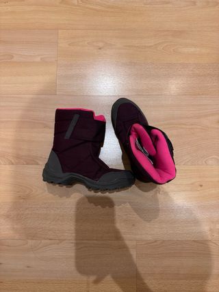 Botas de nieve para niños, perfectas para mantener los pies calientes y secos en el frío. - Talla 34 - Color exterior morado. - Interior forrado de color rosa. - Cierre de velcro.