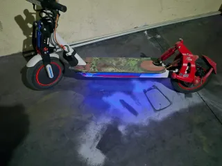 Patinete eléctrico Xiaomi con algunos extras añadidos. - Bolsa de transporte negra. -foco delantero largo alcance - base más ancha Suspensión delantera y trasera Porta bolsa Porta móvil Luces colores Bajos Modificación para dos modos de velocidad uno en 25km/h y otro 36km/h Monse negocia nada él precio no pierdas el tiempo