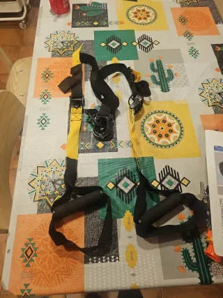 Sistema de entrenamiento en suspensión TRX para ejercitar todo el cuerpo. - Correas de nylon resistentes. - Asas ergonómicas. - Hebillas de ajuste rápido.