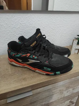 Zapatillas deportivas Joma para fútbol sala en color negro. - Diseño con detalles en naranja y verde. - Logo de Joma plateado en el lateral. - Suela con tecnología REACTIVE.