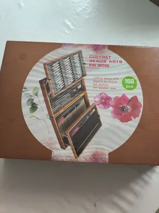 Maletín de arte de madera con 168 piezas para artistas. Ideal para llevar tus materiales de dibujo y pintura. - Contiene una amplia variedad de materiales artísticos. - Presentado en un estuche de madera elegante y práctico. - Incluye pinturas, lápices y otros accesorios.