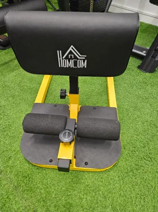 Máquina de gimnasio HOMCOM en color amarillo y negro. - Asiento acolchado. - Reposapiés acolchados. - Estructura metálica.