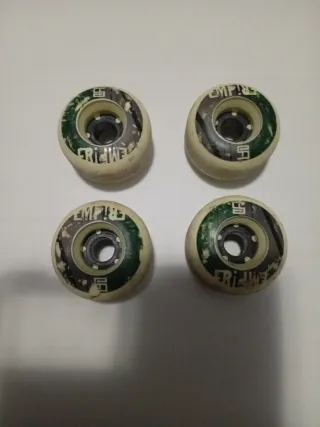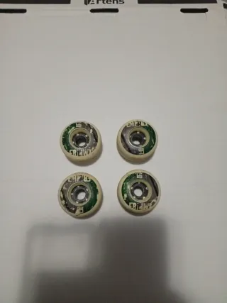 Set de cuatro ruedas para skateboard de la marca Empire. Presentan un diseño llamativo con detalles en verde y negro. - Marca: Empire - Cantidad: 4 unidades