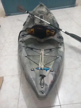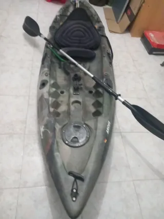 Kayak rígido de camuflaje, ideal para la pesca - Medidas: 2,80 metros de largo y 80 cm de ancho. - Diseño de camuflaje. - Incluye remo y asiento. - portaequipamiento. - 2 depósitos para peces. - 5 apoyacañas