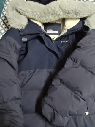 Chaqueta de nieve Quechua para niña, ideal para el frío. Talla 10 - Color azul marino. - Capucha con pelo sintético. - Diseño acolchado.
