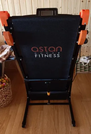 - Diseño compacto. - Panel de control con pantalla. - Asideros laterales naranjas. Cinta para andar y correr prácticamente nueva, muy poco uso. Perfecto estado. Marca ASTAN HOGAR FITNESS. Alcanza hasta 12km/h, tiene ruedas para transportarla fácilmente y sistema hidráulico de plegado sin esfuerzo. La pantalla LCD proporciona toda la información en tiempo real del entrenamiento: velocidad, tiempo transcurrido, distancia recorrida y calorías quemadas. Varios programas de entrenamiento y 2 niveles de inclinación. Amplia zona de carrera de 103x40 cm. Sistema de parada de emergencia. Tiene 2 porta botellas/objetos y pinza de seguridad.