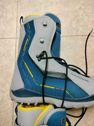 Botas de snowboard Salomon en color azul y gris con detalles amarillos. - Cierre con cordones. - Suela de goma. - Logo de Salomon en el lateral.