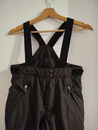 Pantalón de nieve con tirantes, ideal para actividades al aire libre. - Color negro. - Diseño con cremalleras. - Tirantes ajustables.