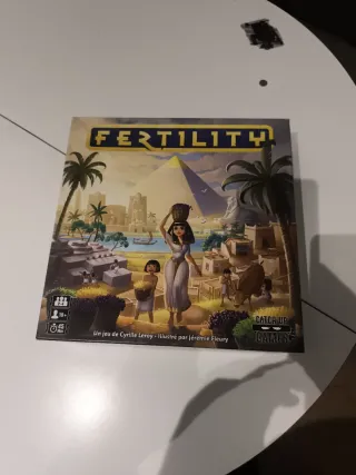 Juego de mesa Fertility, una experiencia temática inspirada en el antiguo Egipto. Está en Francés (Independiente del idioma) Reglas impresas en castellano. Es como un domino vitaminado. - Juego de mesa de Cyrille Leroy. - Ilustrado por Jérémie Fleury. - Publicado por Catch Up Games. - Para 2-4 jugadores. - Edad recomendada: 10+ años. - Duración aproximada: 45 minutos.