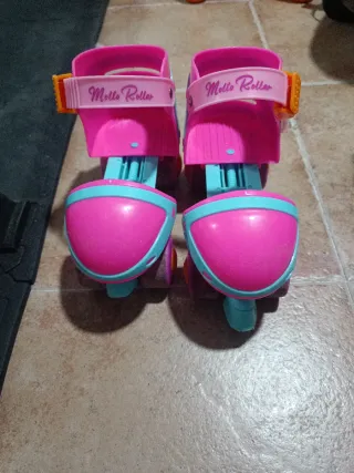 Patines de cuatro ruedas de la marca Molto, ideales para los más pequeños. Disponibles como se muestra en las fotos, rosa y azul Rosa 1 disponible talla 25/32 Azul 2 disponibles, talla 25/32 Precio: 10€ C/U - Diseño ajustable para adaptarse al pie o al zapato. - Cierre ajustable para mayor seguridad. - Ruedas de plástico resistentes.