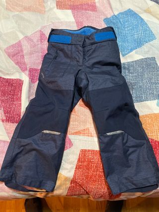 Pantalón de nieve para niño, talla 2/3 años. Ideal para mantener a los pequeños abrigados y secos en la montaña. - Color azul marino. - Tejido resistente y forro interior. - Cintura ajustable con velcro. - Bolsillo lateral con cremallera.