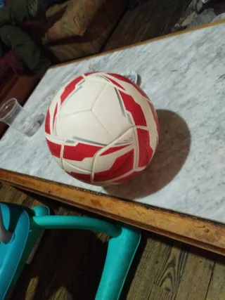 Pelota de fútbol con un diseño llamativo en blanco y rojo perfecto estado precio negociable está para estrenar está muy bien no tiene ni arañazos ni nada - Paneles con detalles gráficos en rojo. - Costuras visibles entre los paneles.