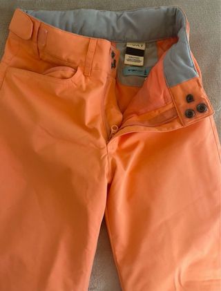 Pantalones de esquí o snowboard de la marca Roxy (Usados una vez). - Color coral. - Talla 14. - Tecnología 10K ROXY DryFlight® con excelente impermeabilidad [10,000mm/5.000g]. - Costuras recubiertas en zonas críticas. - Cintura ajustable. - Bolsillos frontales para las manos. - Polaina de tafetán para las botas.