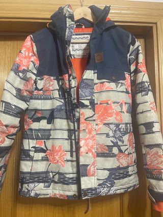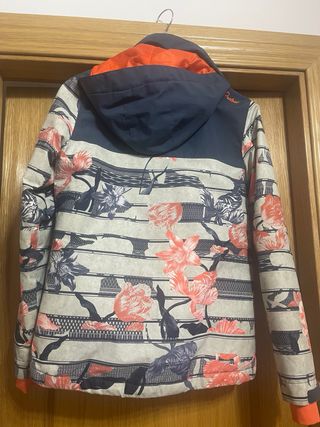 Chaqueta de esquí Protest con un diseño colorido y estampado floral. - Talla 164 cm. - Forro interior naranja. - Capucha integrada. - Bolsillos frontales con botón.