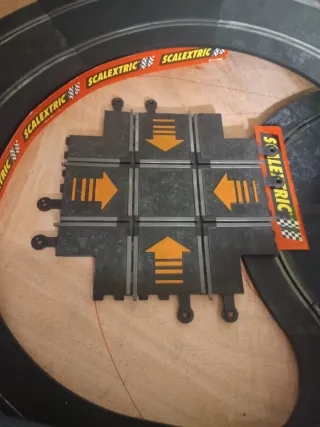Pieza de cruce para circuitos Scalextric. - Diseño de cuatro vías con flechas indicadoras. - Compatible con pistas Scalextric estándar. Palabras clave Scalextric ninco slot carrera pista maqueta Scalextric curvas rectas estrechamiento puente vallas bordes pianos slot it