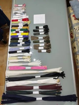 Se vende lote de cremalleras de diferentes tamaños y colores. - Variedad de medidas. - Amplia gama de colores. Resto de mercería. Perecio 0,37 € la unidad