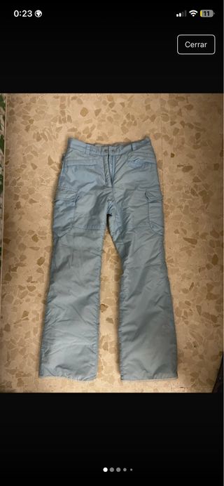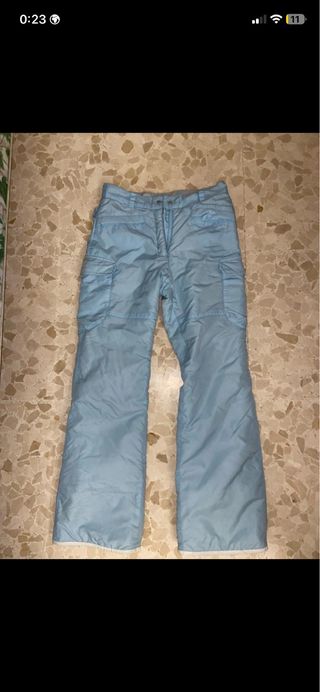 Pantalón de nieve de color azul claro, ideal para actividades invernales. TALLA XS - Diseño con bolsillos cargo. - Piernas acampanadas. SIN PRACTICAMENTE USO quedan ajustados