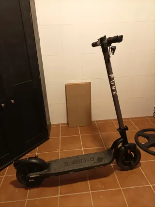 Se vende Patinete eléctrico de la gran marca Pure. Varios modos. Velocidad 25km/h. NECESITA CAMBIO DE BATERÍA. Viene con el cargador incluido pero la batería necesita cambiarla, por eso el precio. Los mangos de goma espuma están algo rotos. Las cámaras de las ruedas, la maneta de freno y el guardabarros se cambiaron hace poco, están casi como nuevos. Recogida en el aljarafe de Sevilla o alrededores. (Huelva y Sevilla ciudad también, precio variable)