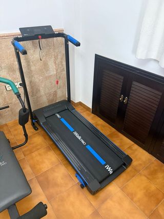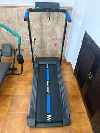 Se vende cinta de correr iWalk PRO en buen estado. - Diseño plegable para fácil almacenamiento. - Pantalla digital para seguimiento de entrenamiento. - Empuñaduras acolchadas para mayor comodidad. - Sistema de seguridad con cordón de emergencia. Además, se vende máquina multifuncional de gimnasio y fuerza. Es del decathlon. También se vende spinning con disco de 13 kg. Está prácticamente nueva. Y por último, una maquina de abdominales nueva.