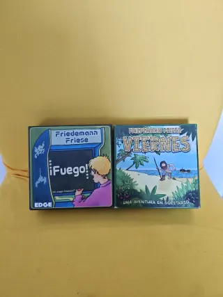 Dos juegos de mesa del autor Friedemann Friese. - Juego ¡Fuego! con temática de arcade. - Juego Viernes de aventura en solitario. No separo. Hago envíos fuera de wallapop.