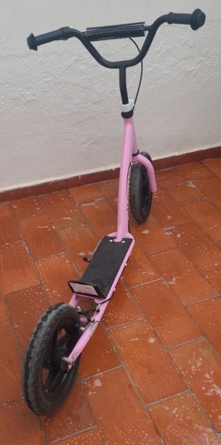Patinete infantil sin usar, en color rosa. Ideal para iniciarse en el mundo del patinaje. - Freno incorporado. - Pata de cabra para mantenerlo de pie.