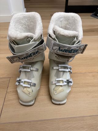 Botas de esquí de la marca Wedze en color blanco. Cuentan con un forro interior suave y cálido. - Cierre con hebillas. - Correa de velcro superior. - Diseño deportivo.
