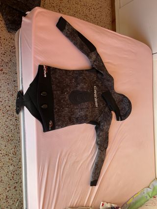 Traje de neopreno Cressi Tracina de 7 mm. Se ha usado una sola vez. - Diseño en camuflaje. - Incluye capucha integrada.
