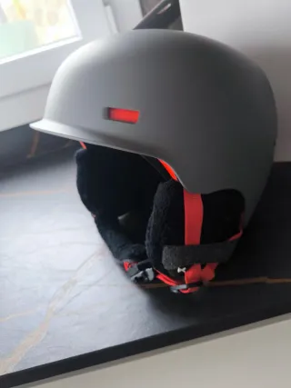 Casco de nieve comprado y nunca usado, marca Anon. Ideal para protegerte en tus aventuras invernales. Cuenta con almohadillas interiores negras y detalles en naranja. - Diseño moderno y seguro. - Correa ajustable para un ajuste perfecto.