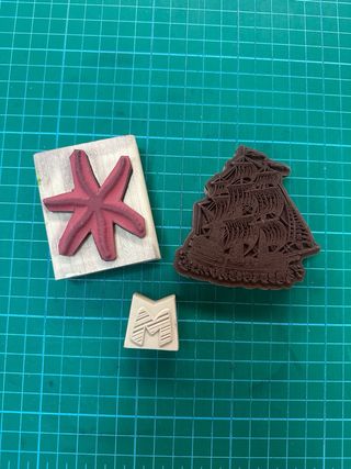 Sellos de madera: barco, estrella y letra M