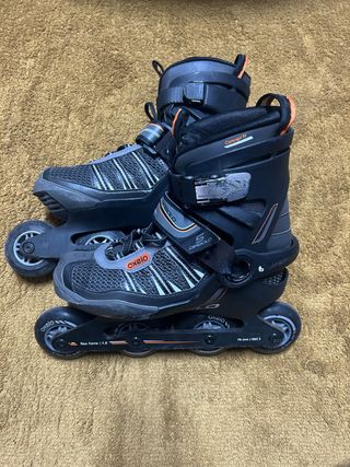 Patines en línea Oxelo Tarmak, ideales para patinaje. - Color negro y naranja. - Ruedas de 76 mm. - Flex frame 1.0. - Talla 39