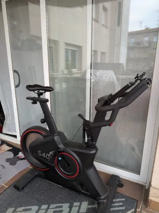 Bicicleta de spinning Cafenza S40 en color negro con detalles en rojo. - Diseño moderno y robusto. - Asiento ajustable. - Manillar ergonómico.