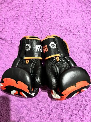 Guantes de muay thai con diseño de tigre. (10 onzas) - Color negro con detalles en naranja y blanco. - Cierre de velcro. - Diseño inspirado en el Muay Thai y artes marciales mixtas.