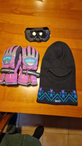 Equipación de esquí en muy buen estado. Incluye: • Guantes de esquí Ski Touring (abrigan mucho) • Gafas de esquí estilo vintage con funda rígida • Pasamontañas/gorro GORE-TEX para frío intenso Todo cuidado y listo para usar. Ideal para esquí, nieve o actividades de invierno. Se puede vender por separado o en pack.