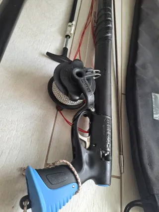 Fusil de pesca submarina de la marca Mares cyrano evo hf estanco 120. Diseñado para la pesca submarina. - Mango ergonómico con empuñadura azul. - Carrete integrado con hilo. - Gatillo metálico manómetro funda etc. También cambio por kayak