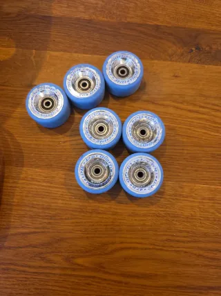 Vendo Set de 4 ruedas para patinaje artístico (y regalo 3) - Marca: Roll Line - Modelo: Giotto - Dureza: 47D - Color: Azul - Ideales para parquet
