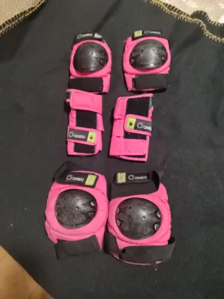 Set de protecciones infantiles de la marca Oxelo, ideal para patinar o montar en bicicleta. - Incluye rodilleras y coderas. - Color rosa. - Cierre con velcro.