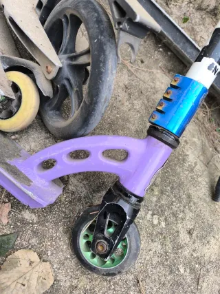 Lote de cuatro patinetes, ideales para divertirse al aire libre. 3 de rampa, uno de ellos muy bueno aunke antiguo, x beast Los otros dos mas cutres Y un oxcelo de ciudad no motorizado