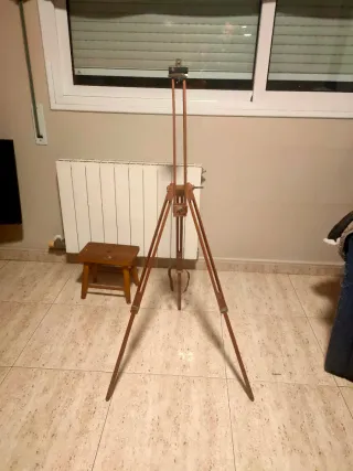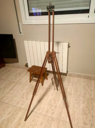 Caballete de madera con trípode. - Estructura de madera. - Diseño de trípode estable.