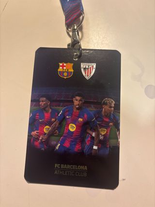 Tarjeta VIP conmemorativa del partido entre el FC Barcelona y el Athletic Club. Ignauguración del nou camp nou - Diseño con escudos de ambos equipos. - Imagen de jugadores del FC Barcelona. - Incluye cordón para colgar.