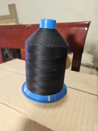 Carrete de hilo de poliéster o nylon en color negro. - Hilo de alta resistencia. - Ideal para costura y bordado. - Bobina de gran capacidad.